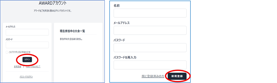 AWARDアカウント画面の「新規登録」をクリックして必要な情報を入力して下さい。 |