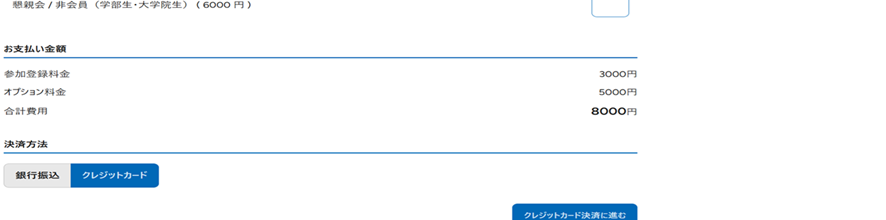 【参加登録画面:サンプル】「会員種別(会員)」「会員区別(社会人)」「オプションあり」 |
